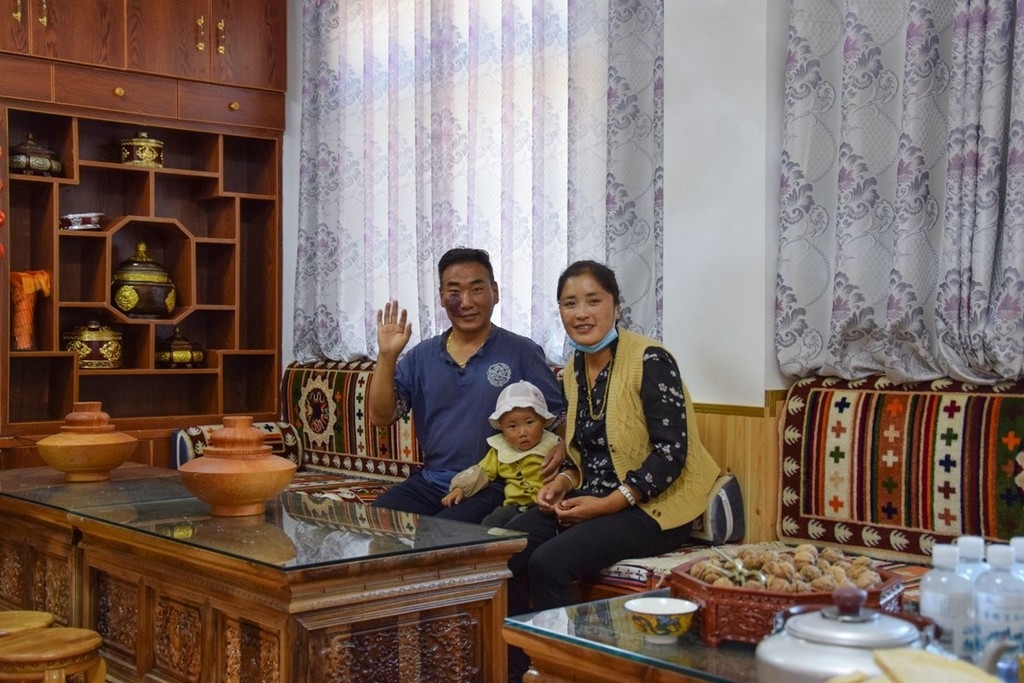10月11日,巴塘县当地干部带着我们拜访了吉村大哥的家。一进门,当地干部就有了新发现,“吉村大哥,你今年又置办了新家具呀!”新家具,是一套价值七八千元的汉式沙发和可以喝功夫茶的茶几,款式简约时尚。