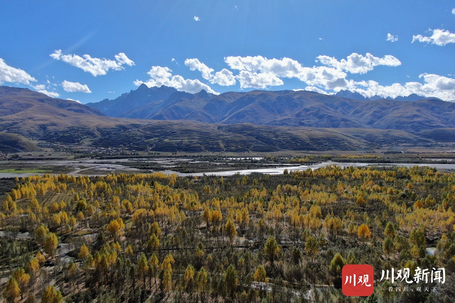 视频|蓝天白云与黄叶 美!快来甘孜县雅砻湿地打卡
