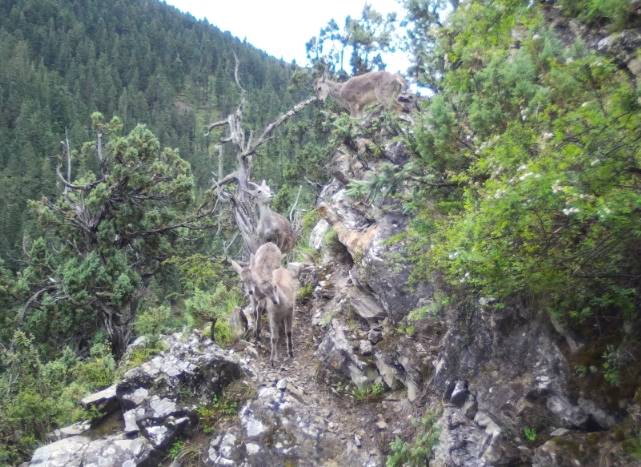 红外相机除了拍摄到金钱豹、棕熊、豹猫、狼、赤狐、黄喉貂、猪獾等食肉目动物外,还拍摄有数量众多的水鹿、岩羊、猕猴、野猪以及中华鬣羚、中华斑羚、狍、白马鸡、血雉等珍贵影像资料。