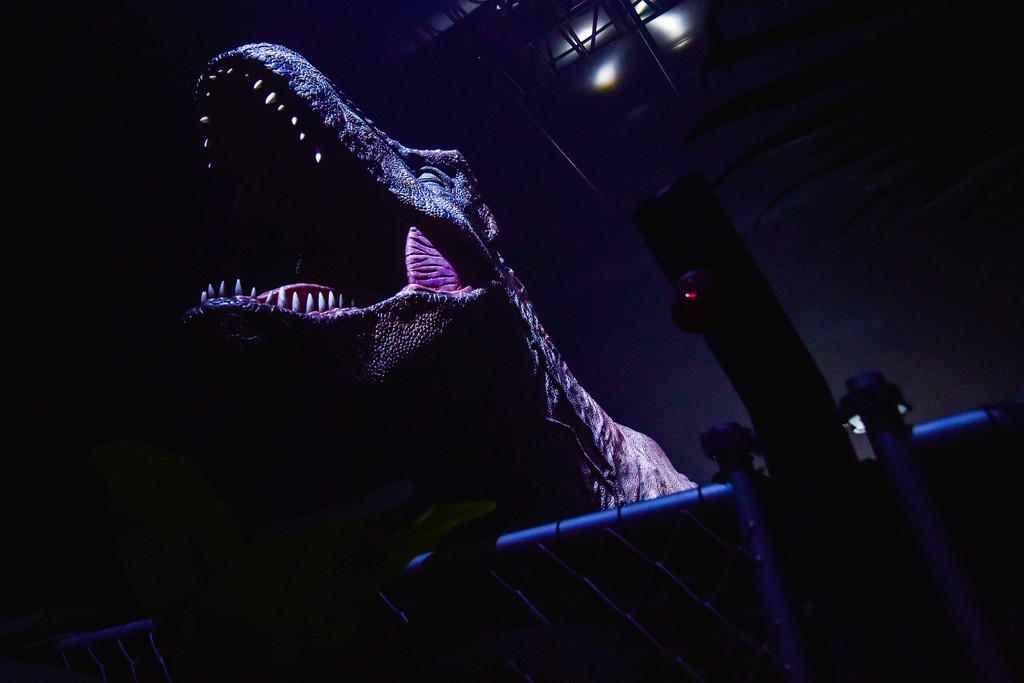 在工作人员带领下,“乘船”来到了岛上,当推开那一扇侏罗纪世界的大门,熟悉的旋律响起,瞬间“穿越”进电影中那个恐龙世界:有巨大但温顺的腕龙摇摆着头发出嘶鸣,敏捷的迅猛龙被套住了嘴但依然发着暴脾气,还有电影里那个最凶猛暴虐霸王龙,上演一场真实感的“丛林历险”。当然还能走进那个“哈蒙德实验室”,看看不同的恐龙蛋,以及刚出生的可爱的恐龙宝宝们,它们住在保温箱中,眼睛都还没有睁开。