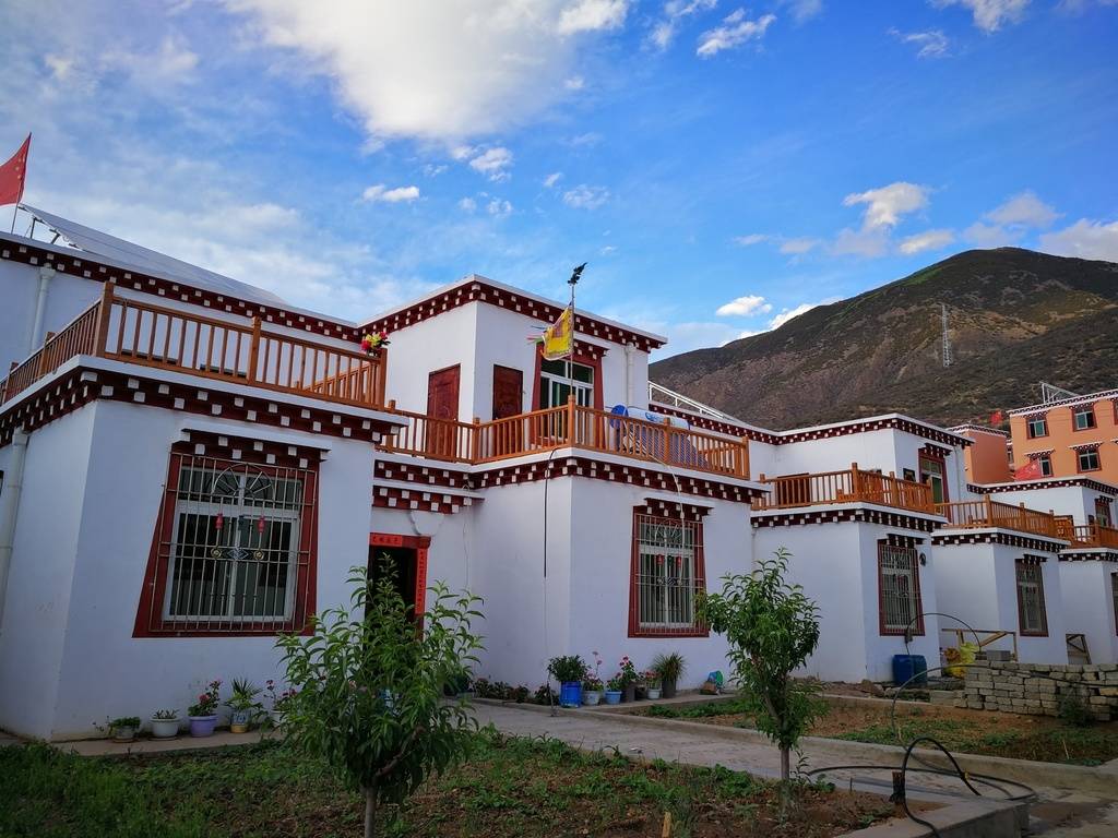 10月11日,记者走进巴塘县“桃源地坞”,还未到,村民吉村已出来迎接。推开他家的木栅门,小院里各式的花朵映入眼帘,红的三角梅、黄的小菊花、白的百合花……朵朵迎阳,处处芬芳。藏式两层独栋小院,别具康巴风情的新房格外引人注目。走近一看,二层新房的楼顶上安装了太阳能电池板和热水器。“现在是走水泥路、住砖瓦房、吃自来水、用动力电,我们日子是越来越好了!”