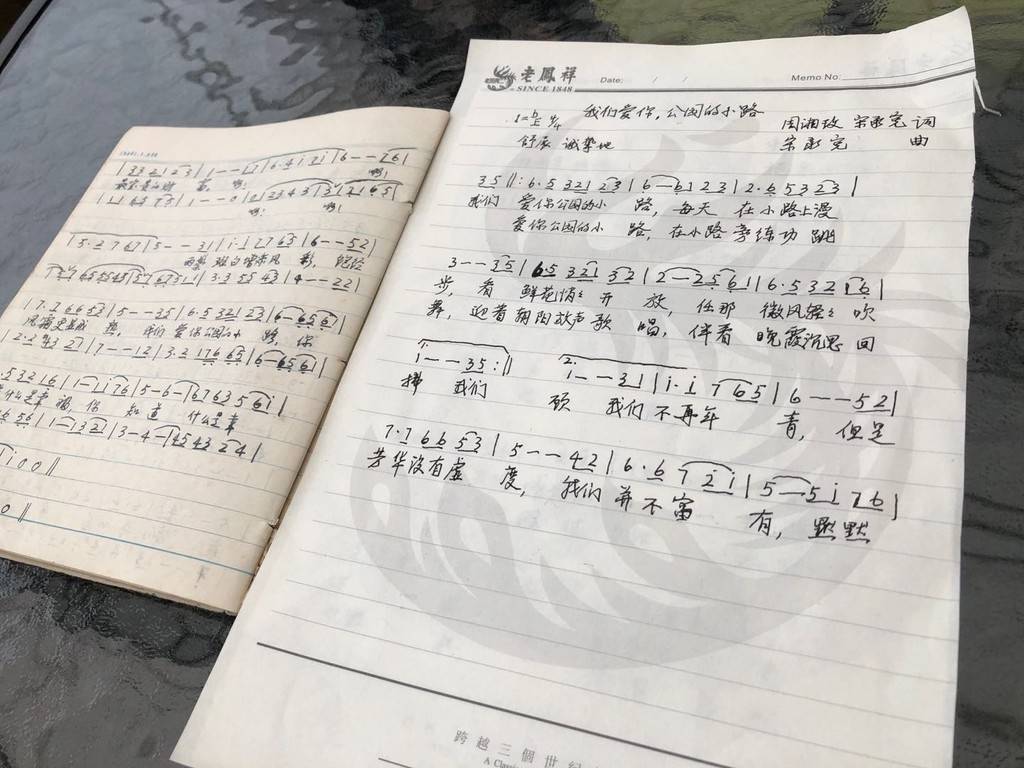 为了迎接国庆,老人抄写着年轻时喜欢的歌曲曲谱,准备联欢表演。