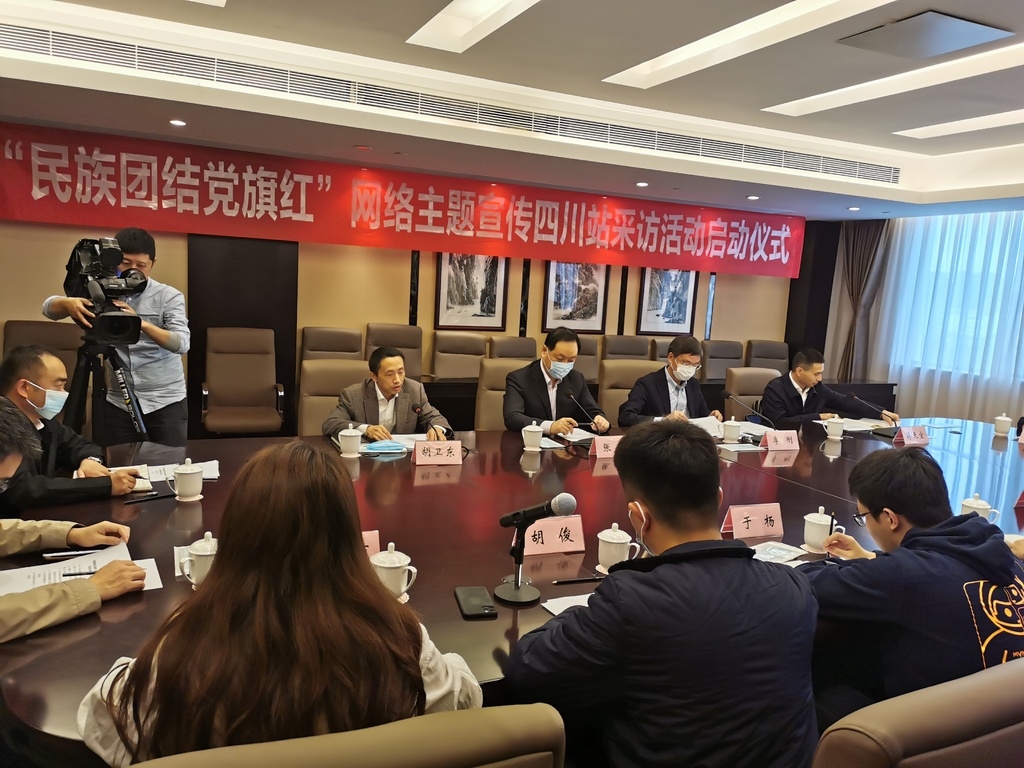 10月14日,“民族团结党旗红”网络主题宣传四川站采访活动启动仪式在成都举行。从即日起,来自新华网、人民网、央视网、中国网等中央级网络主流媒体记者,将深入甘孜州、凉山州,围绕民族地区基层党建、抓党建促脱贫攻坚等方面工作开展为期数天的采访报道,展示我省民族地区在党的领导下,团结进步、奋发有为的风采。