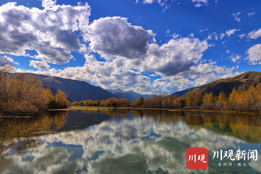10月14日,甘孜州石渠县邓玛湿地旅游景区秋色正盛。邓玛湿地内的正科湿地公园拥有甘孜州全州面积最大的沙棘林,万亩野生沙棘林颇为壮观。