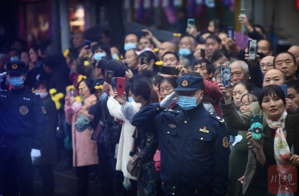 10月15日上午,苍溪因公牺牲民警李雨阗遗体送别仪式在苍溪县城举行,数万群众夹道相送李雨阗。