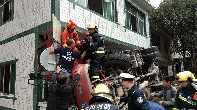 10月15日16时37分,泸州市消防救援支队古蔺县政府队接110转接求助电话称:古蔺县古蔺镇小水村新桥附近一运输沥青油的货车侧翻导致两名人员被困。接警后,中队立即调派2车10人前往处置。