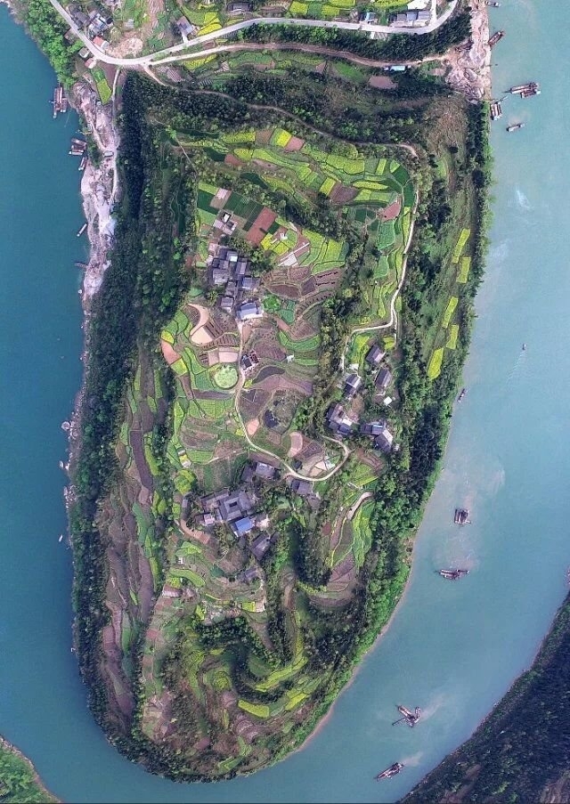 在全国重点文物保护单位泸州神臂城,同样也是这种选址。从地图上可见,神臂城位于泸州市合江县神臂山上,三面为长江环绕。神臂之城,犹如天神手臂伸入长江天险,扼住滔滔江水。更令人感叹的是,神臂城同样突兀拔地、险不可攀,以三面临江的悬崖峭壁以及复杂水情,形成了绝佳的护城之势。