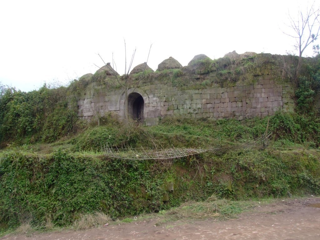 这里究竟有多险?多年前,合江县当地文物部门曾经尝试从江边上岸,结果江岸几乎皆是悬崖峭壁,无奈作罢。从东面进入神臂城,可见高低不一的石城墙高约五六米。东门外残存两道护城石垣,旁有两座护城池,面积达30余亩,如今这里已成一片鱼塘。合江县文物保护中心负责人贾雨田说,这其实是一种层层设防的布局——城外有耳城,城下有池。蒙军攻到这里,按惯性就会掉入深潭。而距离护城池南面100米处曾经还设有炮台,继续阻挡进攻。