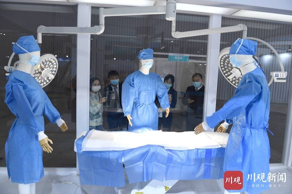 记者在现场看到,在展厅一角有一处搭建的模拟手术室,模拟防护装备的使用场景。戳视频,看手术室需要哪些防护装备!