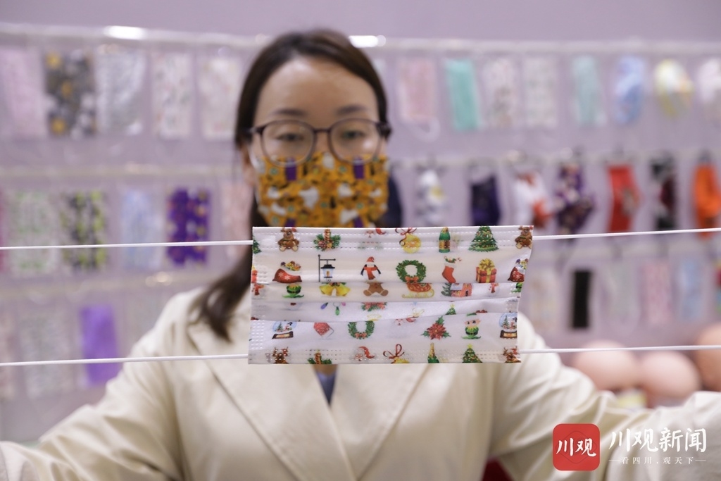 记者在现场看到,一家参展商展示的口罩样品样式和花样十分丰富,戴起来既能起到防护作用,颜色也不至于太单调!