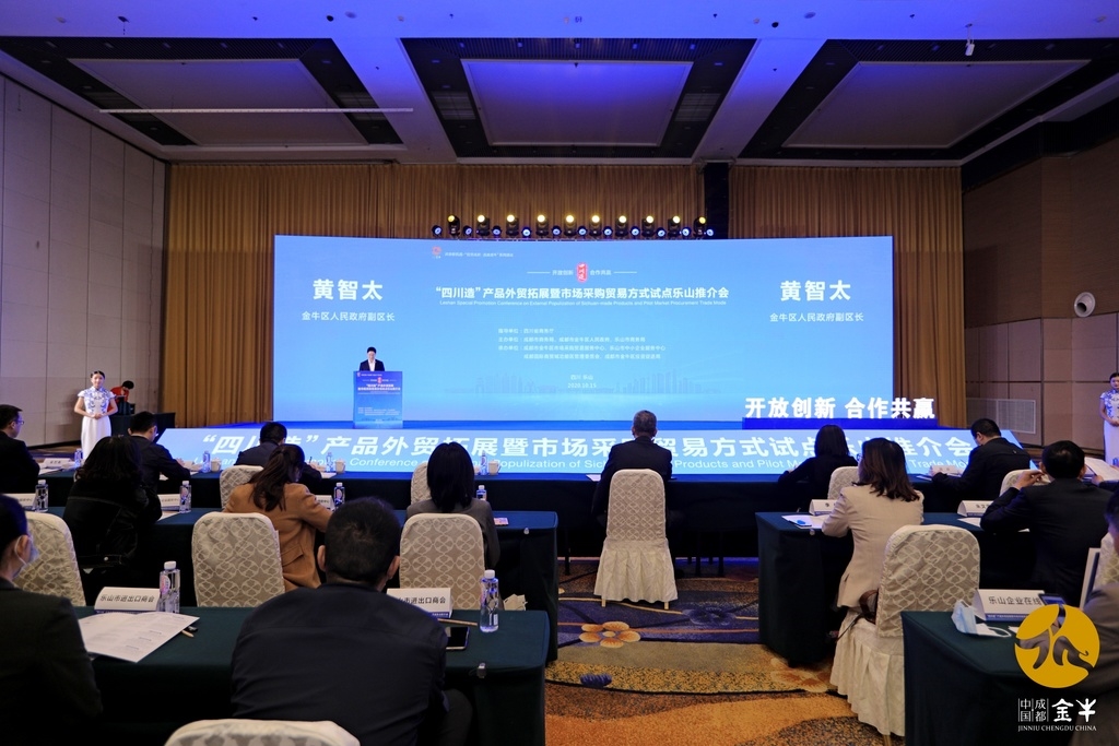 10月15日,成都市金牛区在乐山举办“开放创新 合作共赢——‘四川造’产品外贸拓展暨市场采购贸易方式试点乐山专题推介会”。