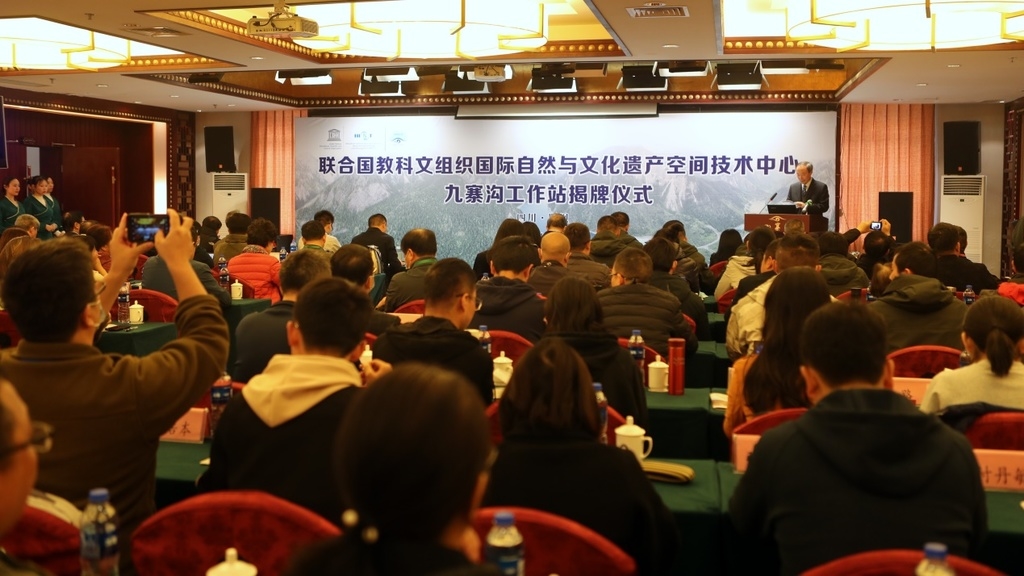 10月16日上午,联合国教科文组织国际自然与文化遗产空间技术中心(HIST)九寨沟工作站成立仪式在九寨沟举行。