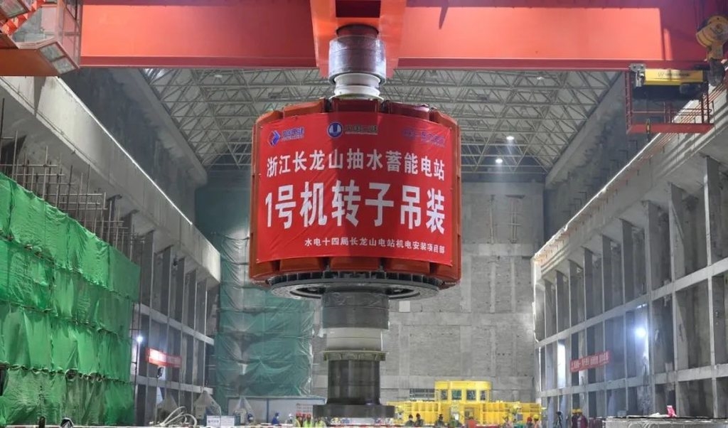 10月17日,长龙山抽水蓄能电站1号机转子吊装