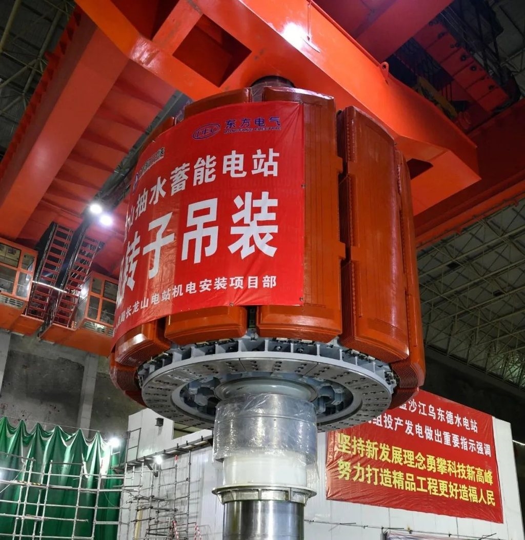 据悉,长龙山首台机组转轮、定子已于8月31日和9月26日成功吊装,本次转子吊装完成后,下一阶段将进行机组轴线调整和分部系统安装、调试工作,力争在年底前完成机组总装,为明年首批机组投产发电奠定坚实基础。