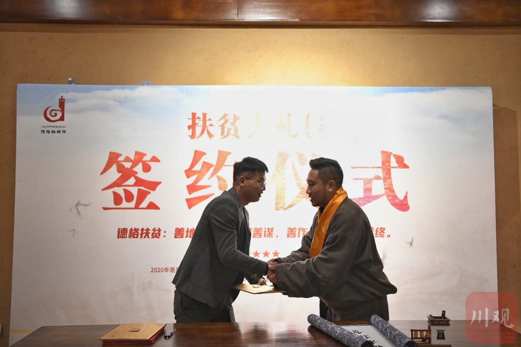 展销会现场,中国爱乐乐团、成都高新区等都用“以购代捐”的方式下单“扶贫大礼包”。善地文化影视传媒有限责任公司负责人还与德格县雕版、藏纸、噶玛嘎孜唐卡绘画等扶贫车间相关负责人进行了签约仪式。据统计,当日展销期间,线上线下销售农产品共计20余万元。