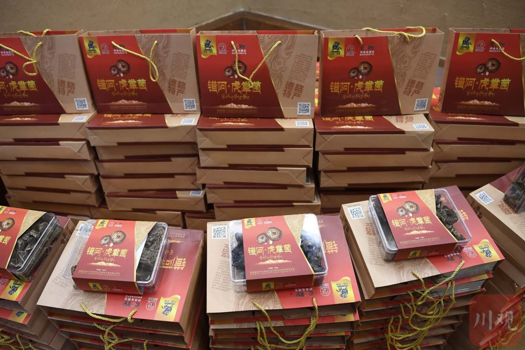 “这个虎掌菌多少钱一盒?”“这个藏纸本子我要10个”,记者看到,展销会共设置有10个展馆,包含牛毛绒、藤编、木雕、麦宿手造、善地农庄等德格特色产品,吸引不少群众前来询价、体验和购买。展销会还设有一个直播间,网友可同步观看直播并下单购买。