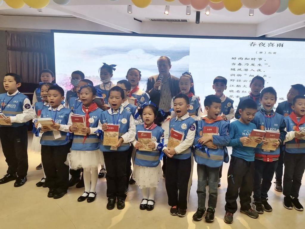 活动开始前,一群小朋友的诗词快板表演和阅读倡导,引得不少观众驻足,为新书分享进行了预热。本次活动聚焦经典古诗词,在八名小朋友和两位家长饱满深情的诗歌诵读声中拉开了帷幕。他们从《中华经典古诗词诵读宝典》中精心挑选了适合低学龄儿童诵读的诗歌进行学习,并朗诵了《江畔独步寻花》《暮江吟》《春晓》《梅花》《山行》《送杜少府之任蜀川》《忆江南》《晓出净慈寺送林子方》八首经典古诗,稚嫩的童音回荡全场。