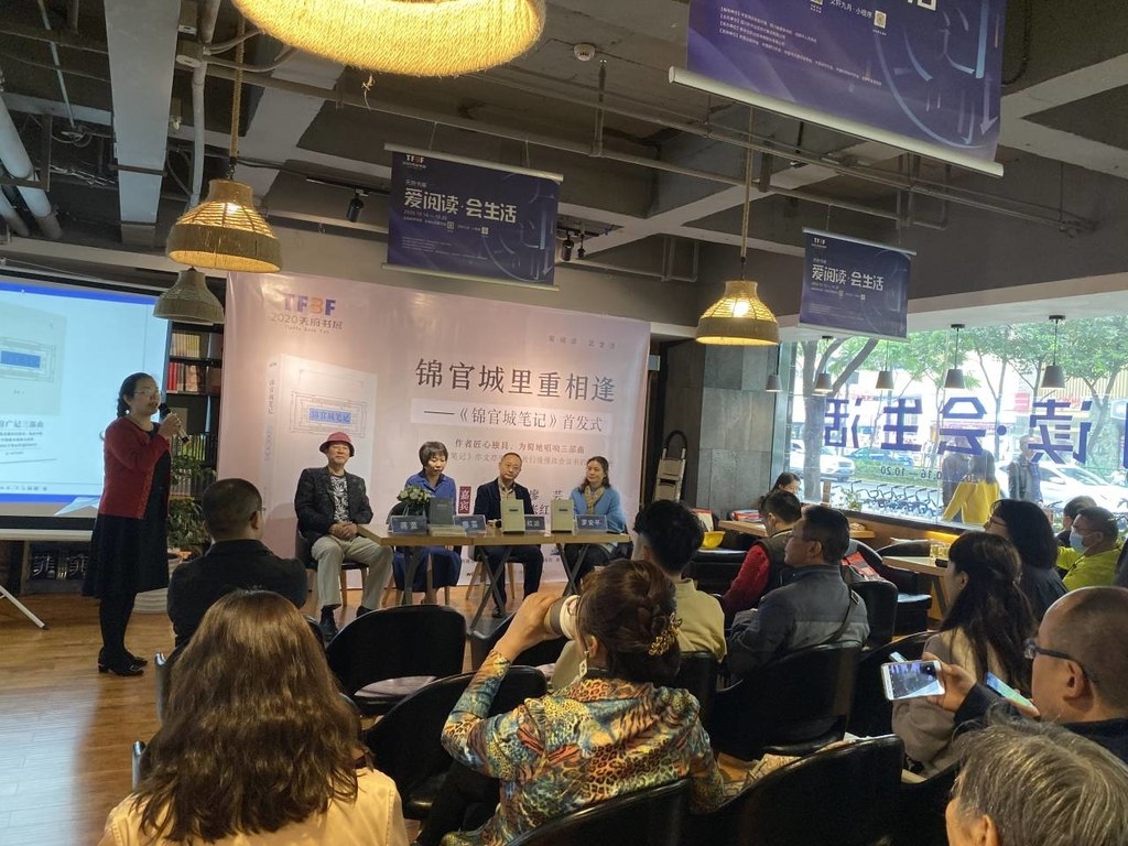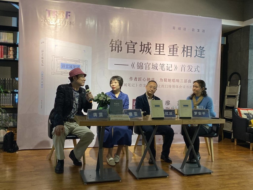 10月18日下午,“锦官城里重相逢”——《锦官城笔记》新书首发式在文轩西南书城举行。《锦官城笔记》作者蒋蓝,成都市作家协会副主席,散花书院、见山书局创始人廖芸,成都市锦江区文化馆馆长、锦江区作协常务副主席张红波,西南民族大学教授罗安平齐聚书城,分享锦官城里鲜为人知的故事,探讨蜀地书写的传统和方向。
