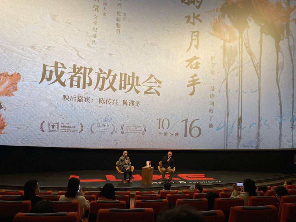 诗词、纪录片、文学,这部集所有冷门片元素为一体的电影,出人意料地引起了广泛的关注。10月19日晚,《掬水月在手》成都放映会在成都百丽宫影城举行。导演陈传兴在映后与成都观众见面,并与当代书画家、艺术史学者陈滞冬展开对谈。