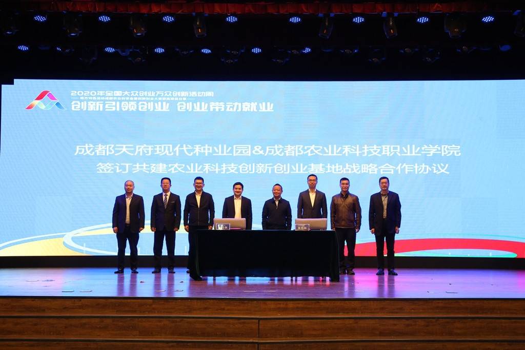 同时,为加快构建院企地发展共同体,推动校院企地人才“打通”使用,完善科研人员双向流动转移接续政策,促进人员在高校院所和园区、企业间双向流动,最大限度调动科技人员创新创业积极性,天府现代种业园管委会和成都市农业科技职业学院在创享会现场签订了战略合作协议。据悉,双方将在党建引领校地合作、共建乡村振兴人才培训学院、共建农业科技成果应用基地、共建农业科技创新基地、共建农业科技创业基地等五个方面深入合作。成都农业科技职业学院党委副书记、院长张之湘在致辞中表示。“学校作为成都农业创新创业联盟常务副理事长单位,坚持把农业双创工作摆在突出位置,充分发挥全省农业职教龙头作用,汇聚联盟成员力量,以创新引领创业、创业带动就业,进一步加强各方合作力度,提高服务水平,提升社会影响力,以创享会为平台,动员组织广大师生积极参与双创实践,激发创新创业动力。”
