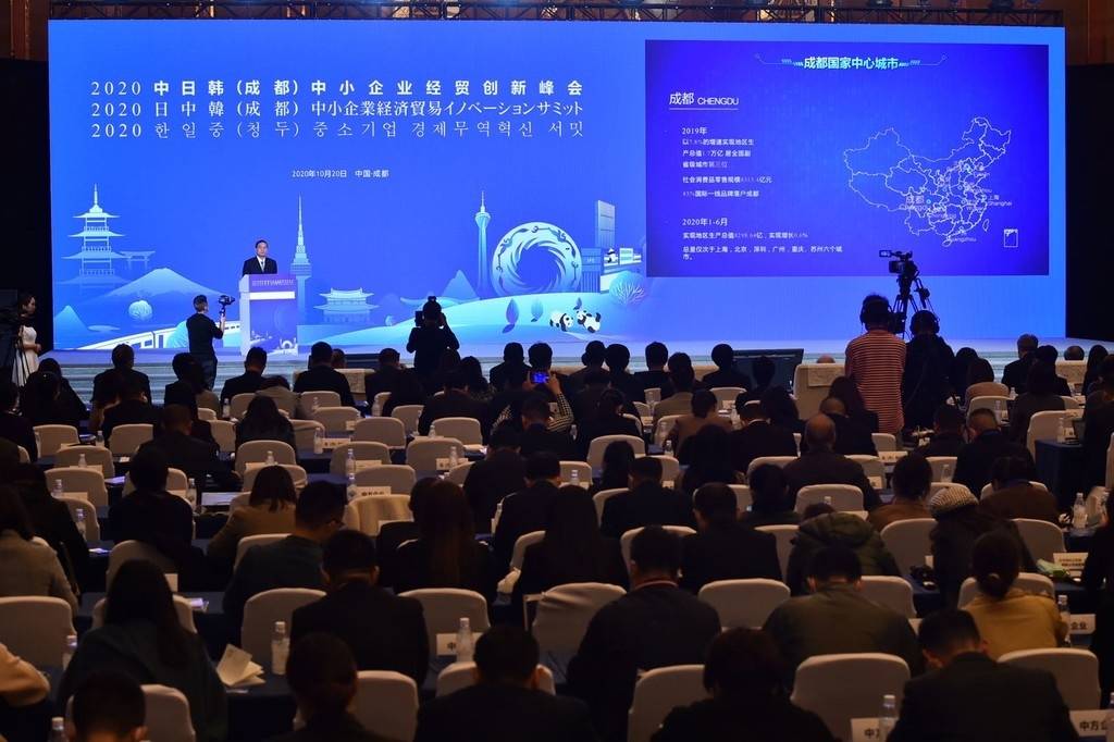 10月20日—21日,2020中日韩(成都)中小企业经贸创新峰会20日—21日在成都举办。会议期间,百余名来自中日韩政府部门、商协会和企业的代表齐聚一堂,将采用线上线下相结合的形式,围绕新经济、健康服务、跨境电商等领域开展经贸交流和科技创新项目洽谈与对接。