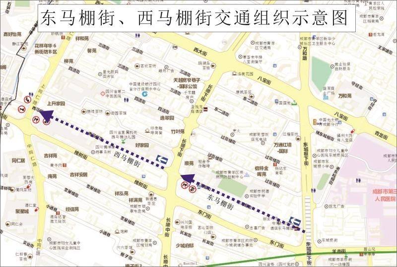 据悉,为了保障东马棚街、西马棚街道路的交通安全与畅通,进一步缓解交通拥堵,根据《中华人民共和国道路交通安全法》《中华人民共和国道路交通安全法实施条例》和《四川省<中华人民共和国道路交通安全法>实施办法》等法律、法规的规定,成都市交管局由此决定对东马棚街(东城根下街至长顺下街)、西马棚街(长顺下街至上同仁路)交通管理措施进行调整。
