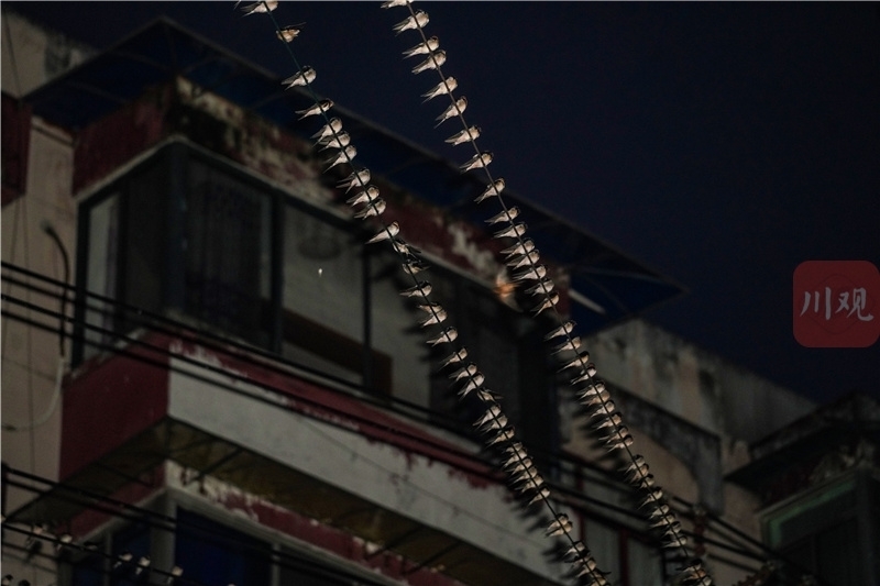 每天清晨和傍晚时段,成都市青白江区城厢镇下北街,就成为鸟的世界:成千上万的小鸟飞舞盘旋于行道树和居民楼上空。