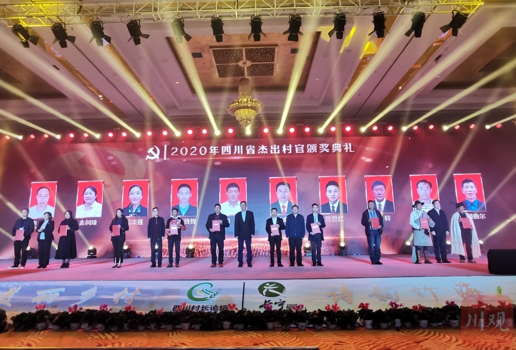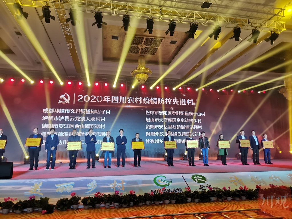 当晚,第四届四川村长论坛暨村社发展大会举行四川农耕文化展演暨2020杰出村官颁奖活动,为四川的10名杰出村官和10个农村疫情防控先进村颁奖。