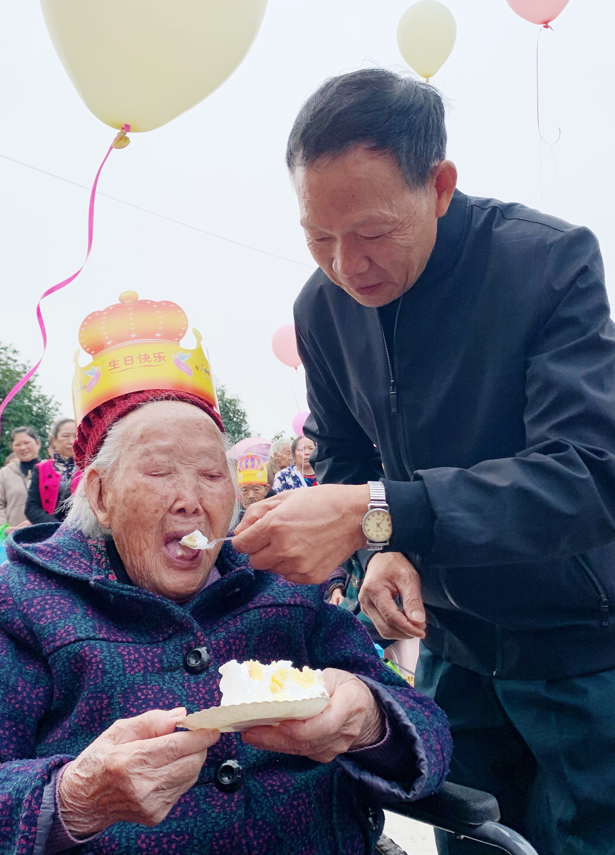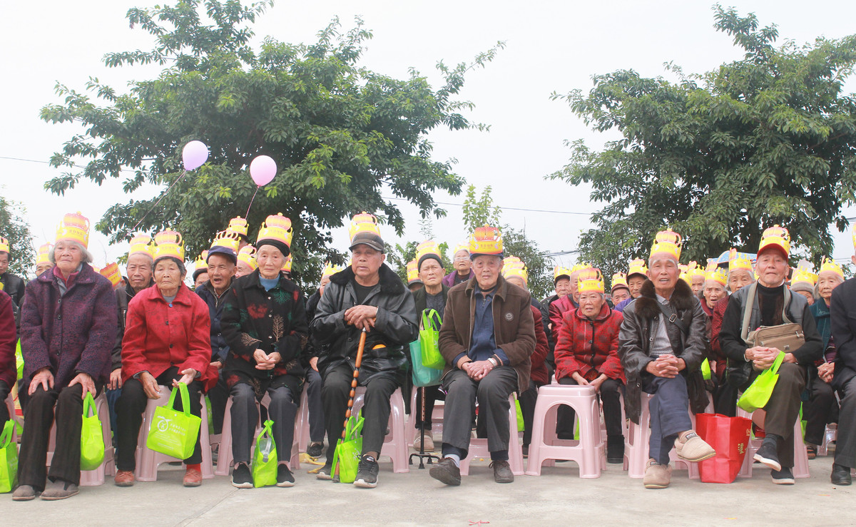 10月23日,在“重阳节”前夕,成都市郊青白江区清泉镇五桂村“两委”为该村80岁以上的老人举办集体生日会,并为老人们送上暖冬棉袄。