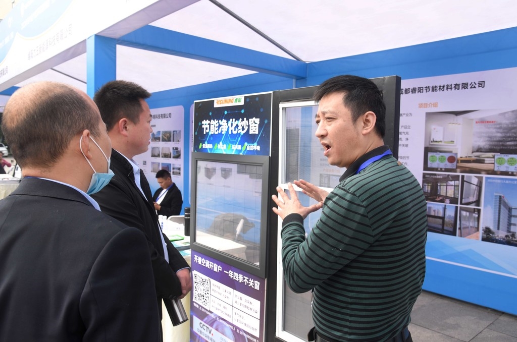 现场展示的节能净化纱窗。 鲍安华 摄