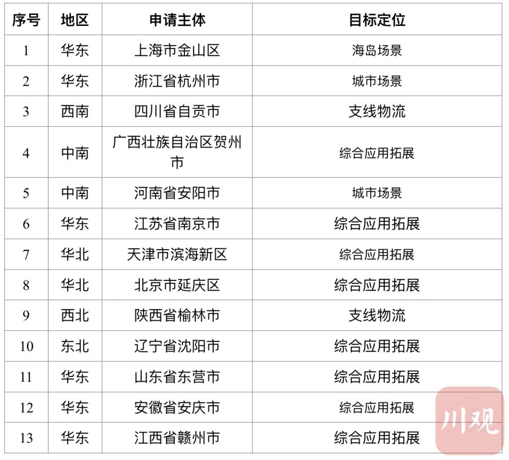 近日,中国民用航空局公布首批13个民用无人驾驶航空试验基地(试验区),包括上海市金山区、浙江省杭州市、四川省自贡市、广西壮族自治区贺州市、北京市延庆区等。自贡成为全国首批、川渝地区唯一的全国民用无人驾驶航空试验基地。