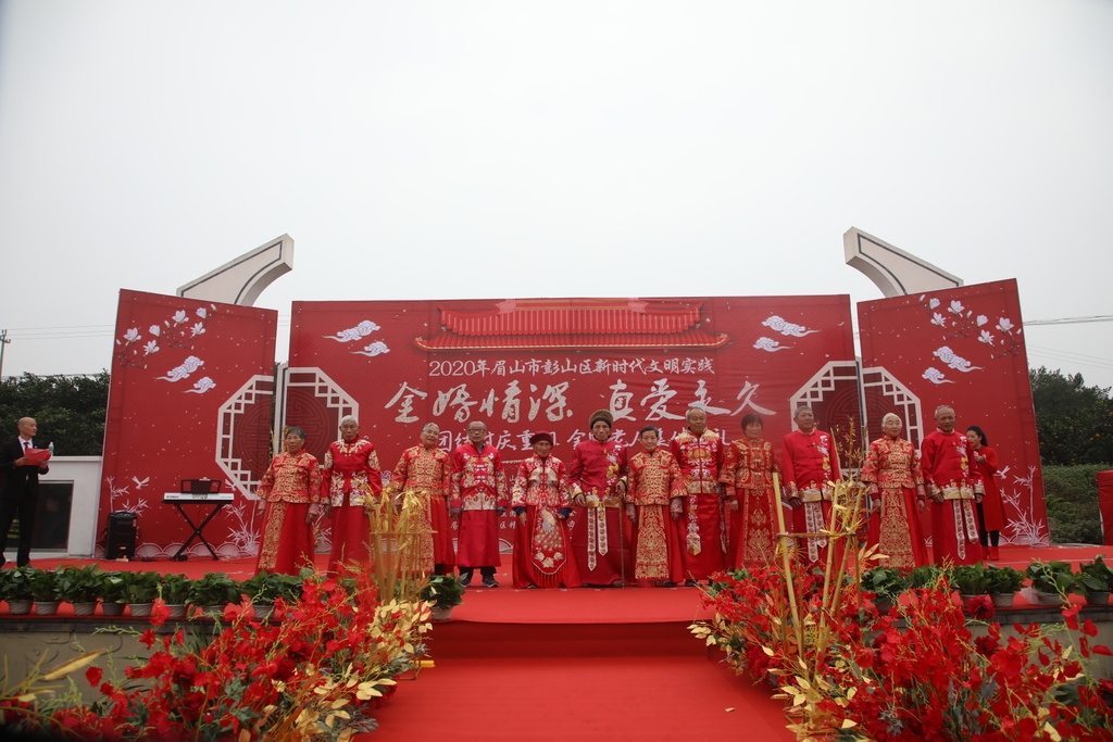据了解,彭山是我国首批命名的中国长寿之乡。近年来,该区高度重视老龄工作,大力弘扬养老孝老敬老爱老社会风尚,构建老年人友好社会环境,让老年人能够安享晚年。从2000年起,彭山已连续五轮成功创建省级敬老模范区。婚礼仪式上,老人们的子孙还上台为老人敬上了感恩茶。