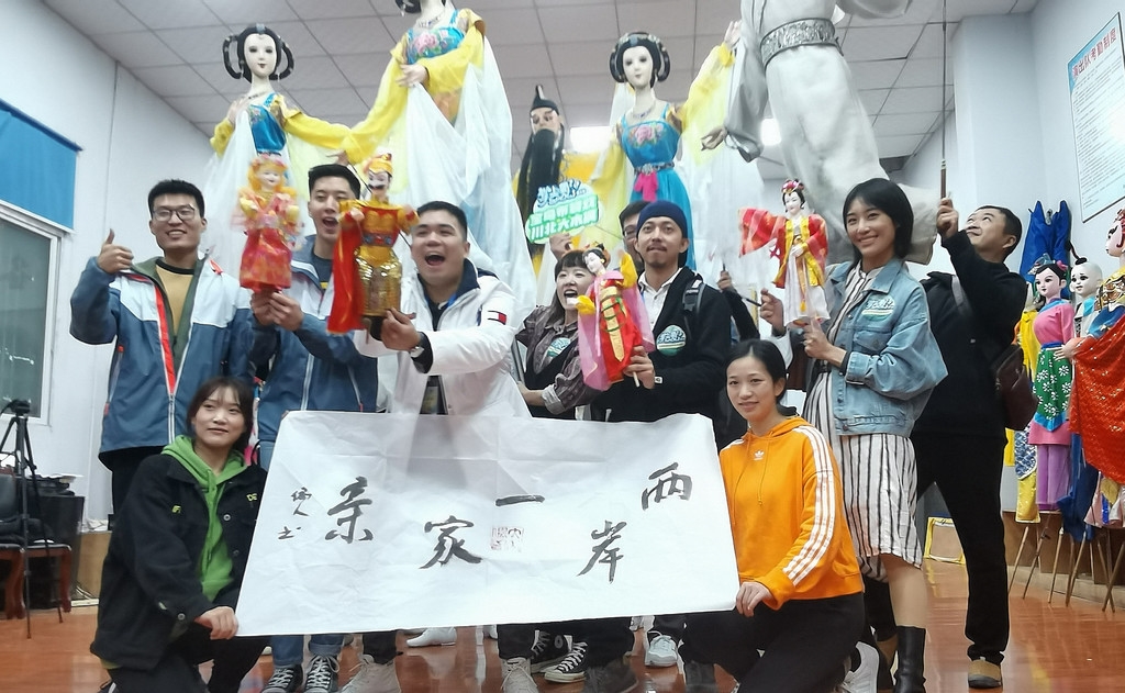 19日晚,在南充市大木偶剧院,一场特别的戏剧正在上演:舞台上,大木偶演员们像撑伞一样把木偶举起,并让木偶比划着各种动作。当大木偶灵活地拿起毛笔,写起“两岸一家亲”的书法时,现场瞬间被点燃,采风团全员拍手叫绝。书豪用vlog的形式,记录下了这神奇的瞬间,“希望台湾朋友能够通过我的视频,了解一个更为鲜活的四川。”