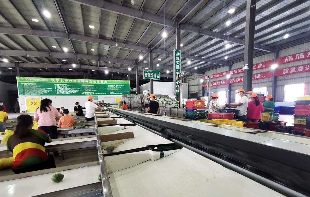 同样充满科技感的,还有盐边县现代农业芒果产业园区的锐华万吨果蔬气调库冷链物流中心。“我们拥有全国首条芒果灭菌智能分选线。”锐华农业开发公司相关负责人说,通过技术创新,目前已建成标准化果蔬采后处理综合体,果蔬单价可提高10%左右。