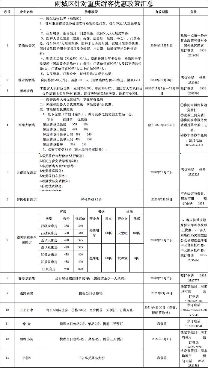 文旅优惠一览表