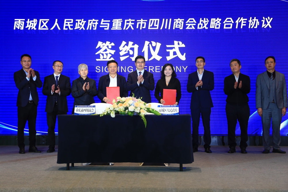 10月27日,雅安市雨城区文化旅游(重庆)推介会上,雅安市雨城区人民政府与重庆市四川商会签署了《战略合作协议》,明确建立长期的、全面的、深度的合作,充分发挥各自优势,促成投资项目,产生共同效益。