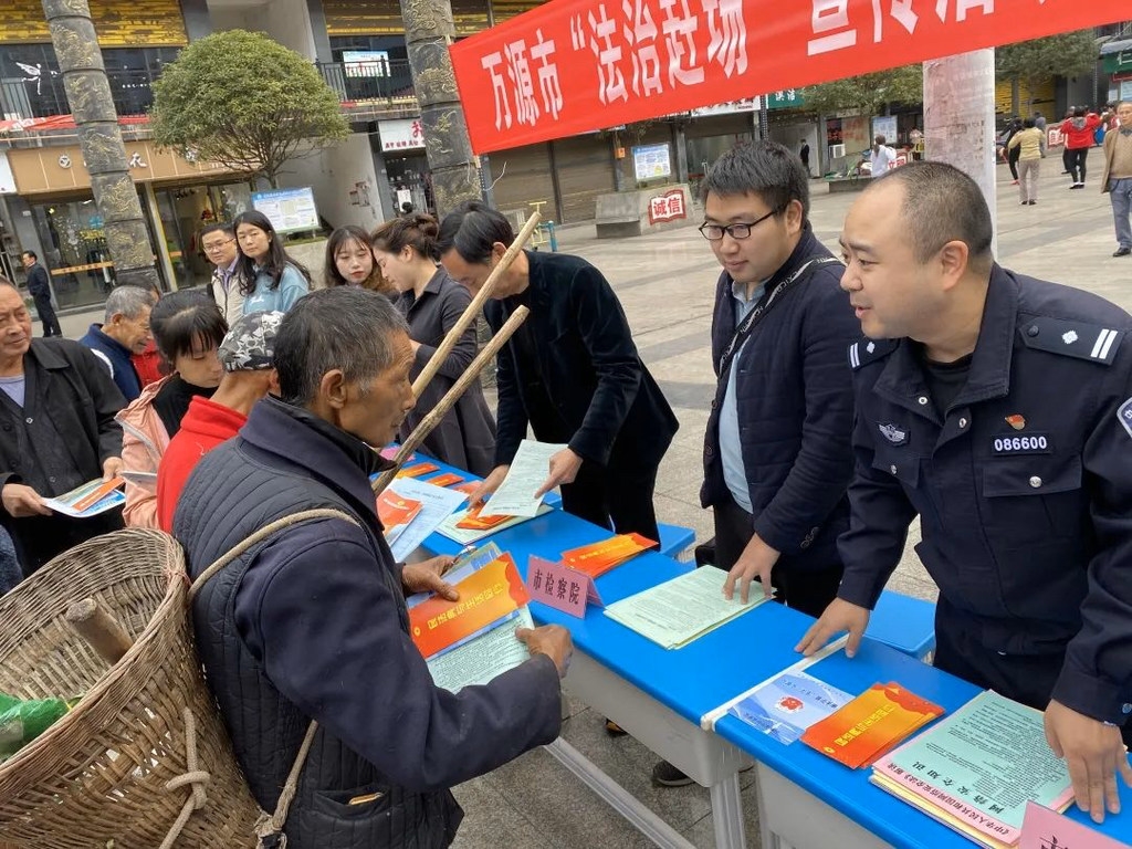 为弘扬法治精神,提高群众的法律素养,持续提升公众对平安建设的知晓率,近日,万源市司法局联合市法院、市检察院、市公安局、青花镇人民政府,利用“赶场天”人员密集的契机,在青花镇立信社区五一广场开展“法治赶场”普法宣传活动。