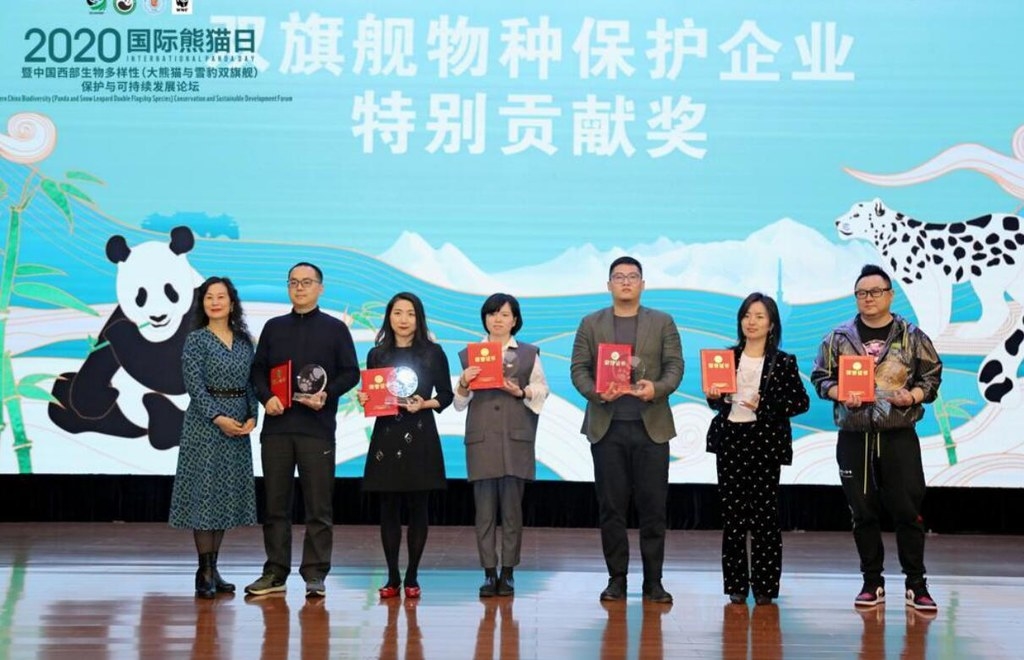 为了表彰社会力量对保护作出的贡献,四川省林学会在活动中为四川天府银行股份有限公司、武汉当代科技产业集团股份有限公司、上海传美实业有限公司、北京工美珠宝艺术品有限公司、健乐士贸易(上海)有限公司、杭州摩登大自然科技开发有限公司、北京京东公益基金会、上海鹰角网络科技有限公司颁发了“双旗舰物种保护企业特别贡献奖”。
