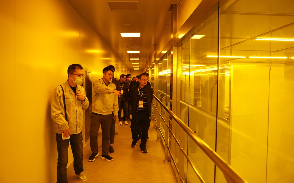 “无人工厂”是记者在参观熊猫显示的生产车间时最大的感受。偌大的厂房空无一人,微弱的黄色灯光下各式机械臂有序地对显示面板进行着加工。据该厂工作人员介绍:“曝光是液晶显示屏的核心工艺。为了防止厂房内照明用的白灯中的蓝光造成部分工艺提前曝光,所以需要在黄色灯光下完成。”工作人员解释说,这样的车间也被称作“关灯车间”,因为所有的生产工序都是自动完成,黄灯只是为了便利工作人员对设备进行检修和监控。参观全程,记者只看见一名头戴防毒面具的工作人员,在车间内对设备的运行状态进行监控。