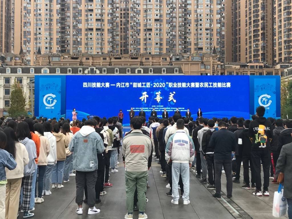10月28日上午9点,四川技能大赛—内江市“甜城工匠·2020”职业技能大赛暨农民工技能比赛开幕式举行。