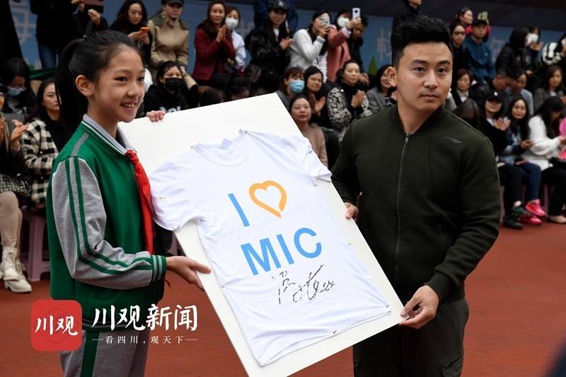 开幕式上,冯喆在印有“美年”印记的T恤上签名,将自强不息的奥运精神传递给成都学子,点燃了孩子们对大运会最热情的期待。