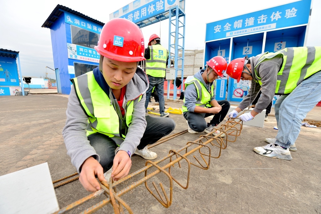 在知识竞赛环节,参赛选手们利用自身的知识积累,主动出击、反应迅速、积极抢答,比分你追我赶,将现场气氛推向了高潮。实操环节,落后的参赛代表队毫不气馁。在钢筋加工、钢筋绑扎、二次结构砌筑等基础操作比武中,选手间默契配合、快速精准完成考核任务,围观人群不时为参赛人员加油鼓劲。