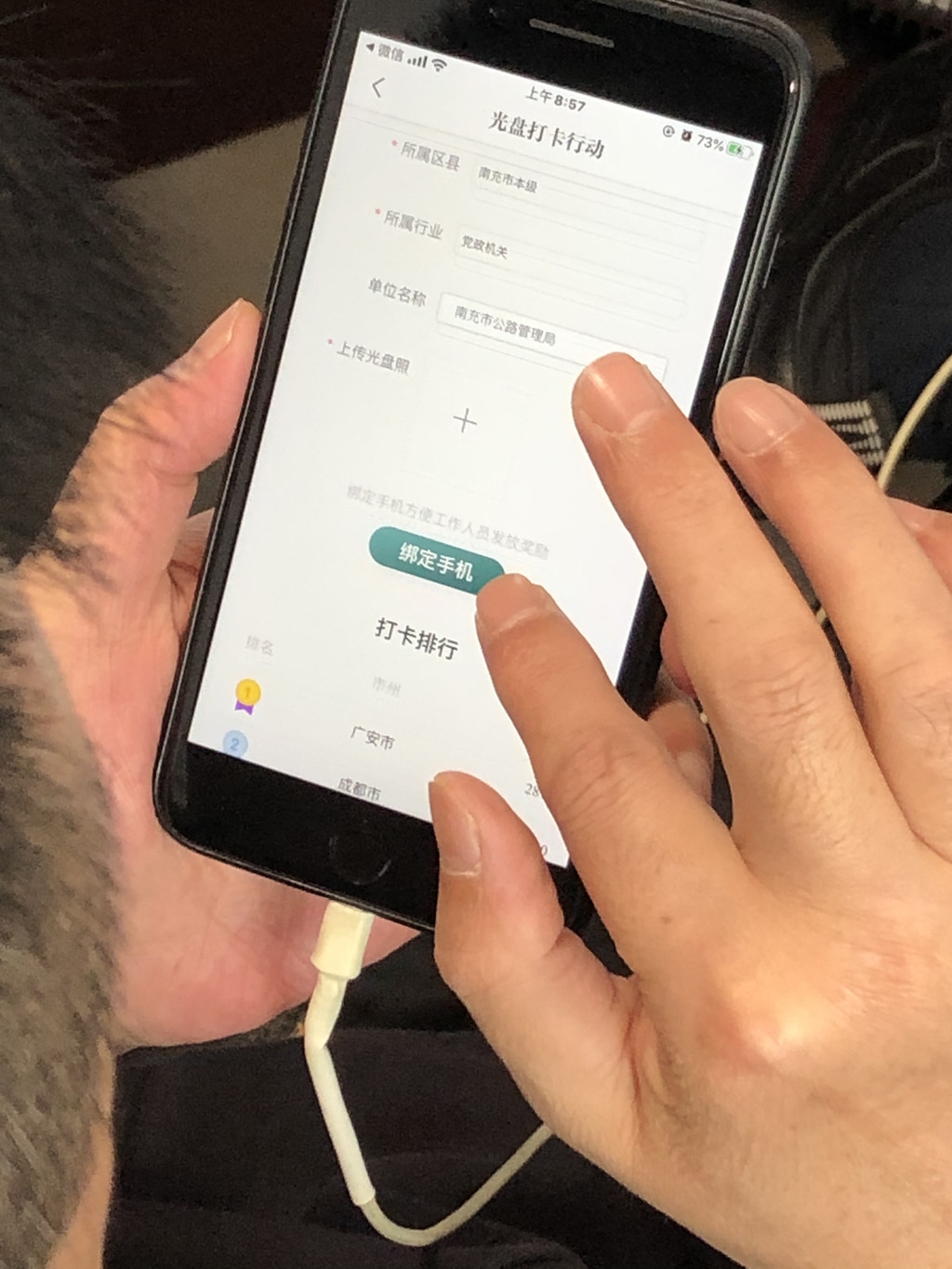 除了党政机关,公共机构还包括广大医院和学校。在南部县,县卫健局会定期派人到相关医院、医疗机构宣传打卡行动;该县教育系统也形成了一套针对当地实际的光盘打卡落实方案;四川南部经济开发集团有限公司等企业的员工已经连续打卡一周以上……