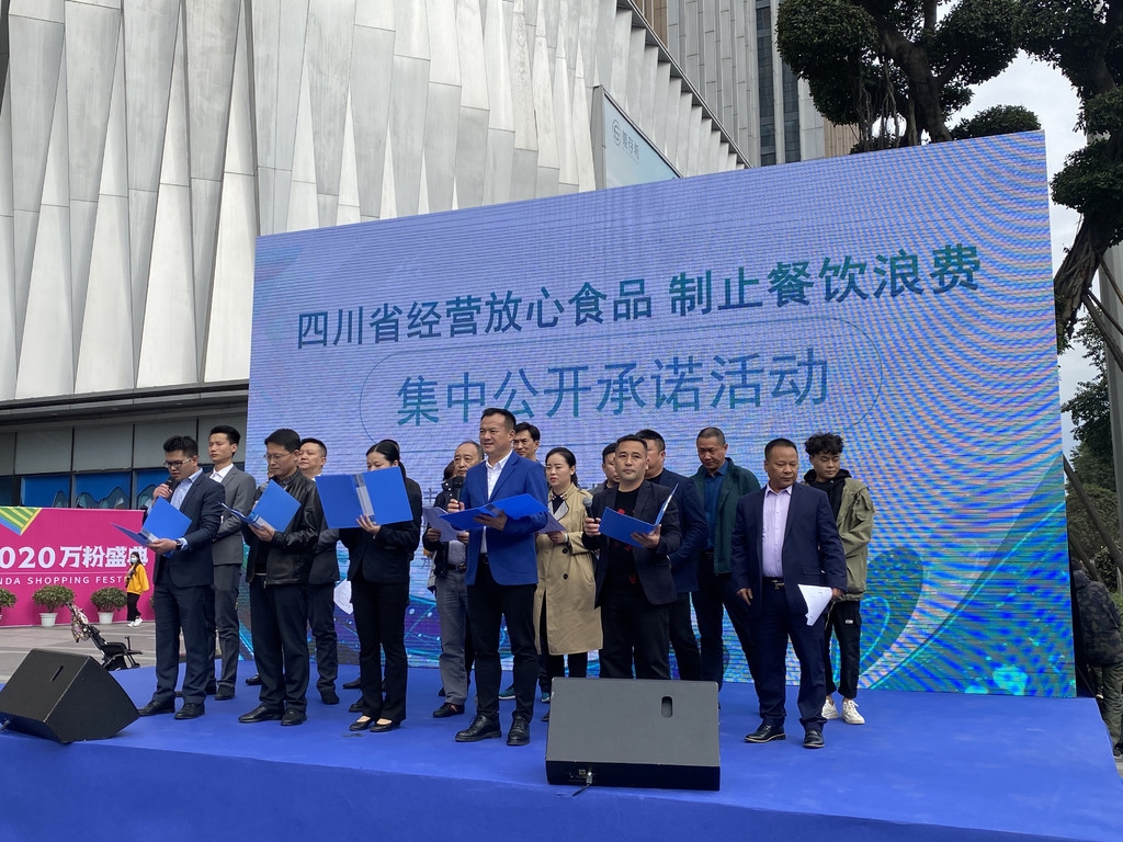 “为保障广大消费者‘舌尖上的安全’,本超市、本餐厅郑重承诺,严格遵守《中华人民共和国食品安全法》等法律法规要求,严把食品安全重要环节的管控,积极倡导文明消费、杜绝浪费消费理念”……10月28日,四川省“经营放心食品 制止餐饮浪费”集中公开承诺活动在成都金牛万达广场举行,成都家乐福超市有限公司、锦江麦德龙现购自运有限公司成都青羊商场、四川舞东风超市连锁股份有限公司等食品超市,小龙翻大江宽窄店、成都市成华区温鸭子餐厅、大蓉和一品天下店等餐厅就“经营放心食品 制止餐饮浪费”分别进行现场公开承诺。