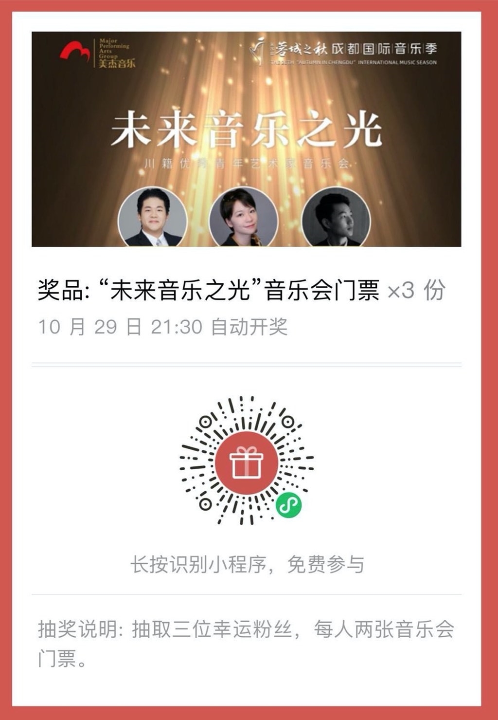 10月31日下午2点半,第26届“蓉城之秋”成都国际音乐季“未来音乐之光——优秀青年艺术家音乐会”将在成都城市音乐厅奏响。