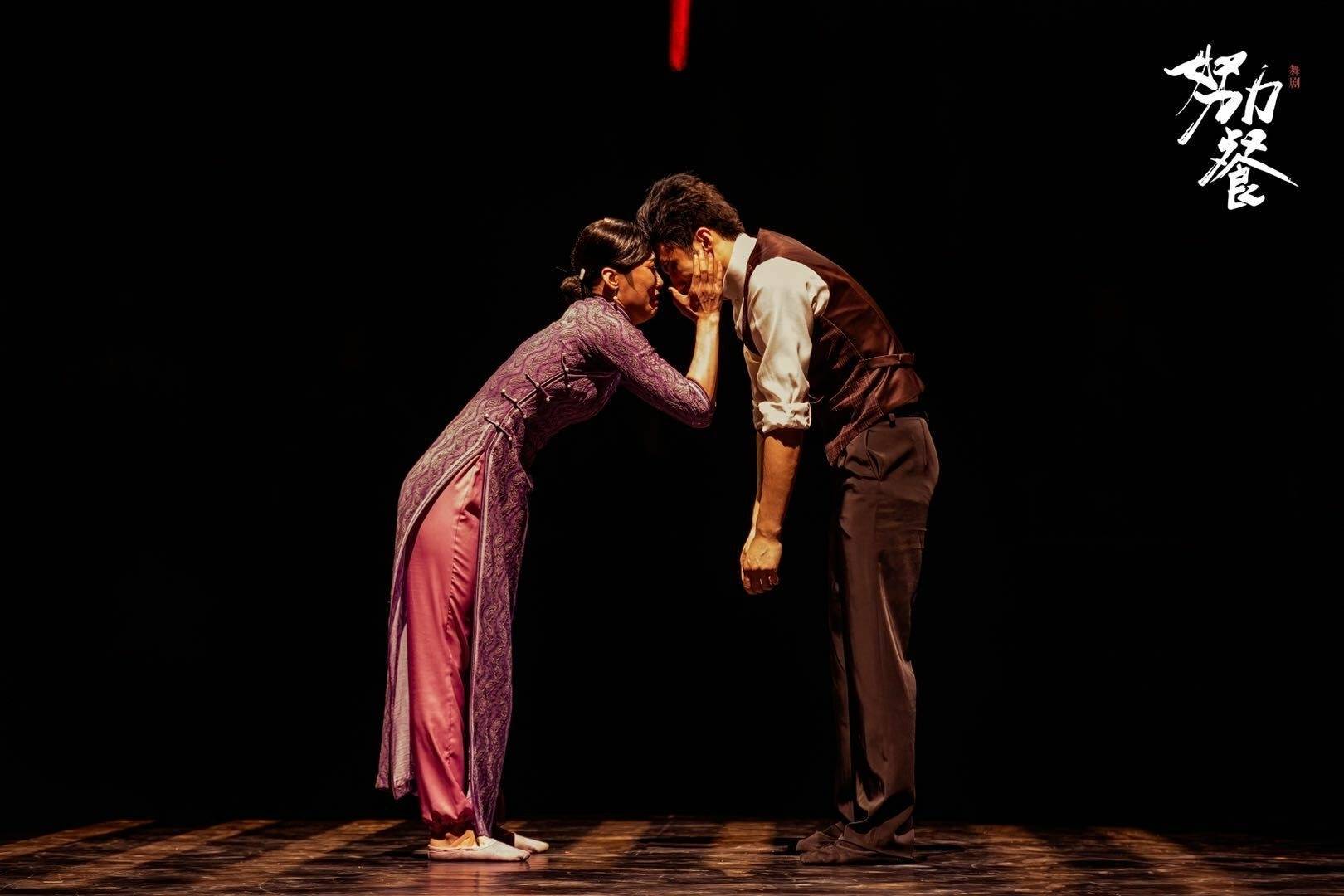 剧中,几场群舞大戏,铿锵而悲壮,为全剧填上了极为厚重、深沉的底色。舞剧中段,当日军逼近,一场突如其来的轰炸让所有观众的心提到嗓子眼;车老板与黄三妹手捧饭碗,探望食不果腹的贫民百姓,昂扬地大声疾呼抗日、救亡,令人心潮澎湃;为保护情报不落入敌人手中,亮嗓子掩护车老板撤退,只身抗敌,临危不惧;终章的“血战”舞段,当餐楼众人散去,仅剩车老板一人挺直腰杆,拿起枪杆——这时,大气磅礴的说唱昂扬响起,已经牺牲的和仍在战斗的人们从燃烧的血色幕布后走出,象征着一代革命者强大的精神世界和不渝的志向与信仰——“为百姓加餐,努力努力;救民族危亡,血战到底!”壮烈的旋律、激昂的舞蹈和舞者们坚定如铁的眼神,将舞剧推向最终的高潮。