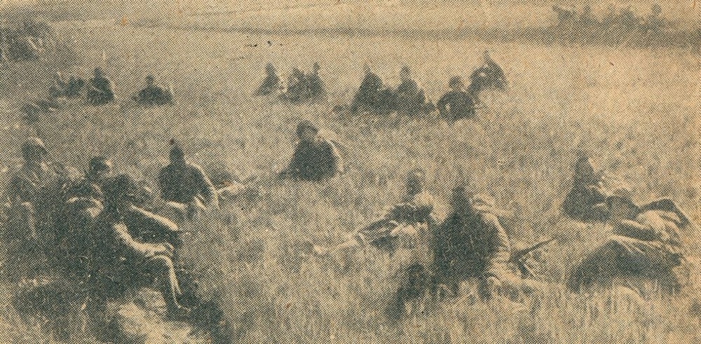 成都陆军军官学校在龙泉驿军事演习后,在场地中休息的士兵