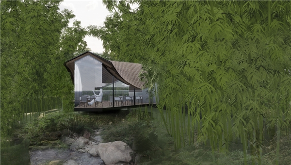 这一批获奖的民宿设计作品用具体的建筑形态向与会者展示了龙门山民宿现阶段的发展水平和未来发展方向。这其中烟火渡民宿设计方案,以“香火渡神仙,烟火渡人间”为主题,表达了民宿场域下的田园生活美。而由之间建筑设计的未·溪谷民宿设计方案则是探讨了民宿建筑与自然,人文环境和谐共生的主题。之间建筑认为,建筑不是独立存在的,每一个建筑个体是在其所处地域的自然和人文环境中生长而来的。他们的方案未·溪谷民宿设计方案,借鉴了川西民居传统的“双坡屋”构型,既是基于对川西多雨气候的具体考量同时又沿袭了当地的传统民居风格。在现代化的异变构型中,保留了对传统人文自然景观的尊重。