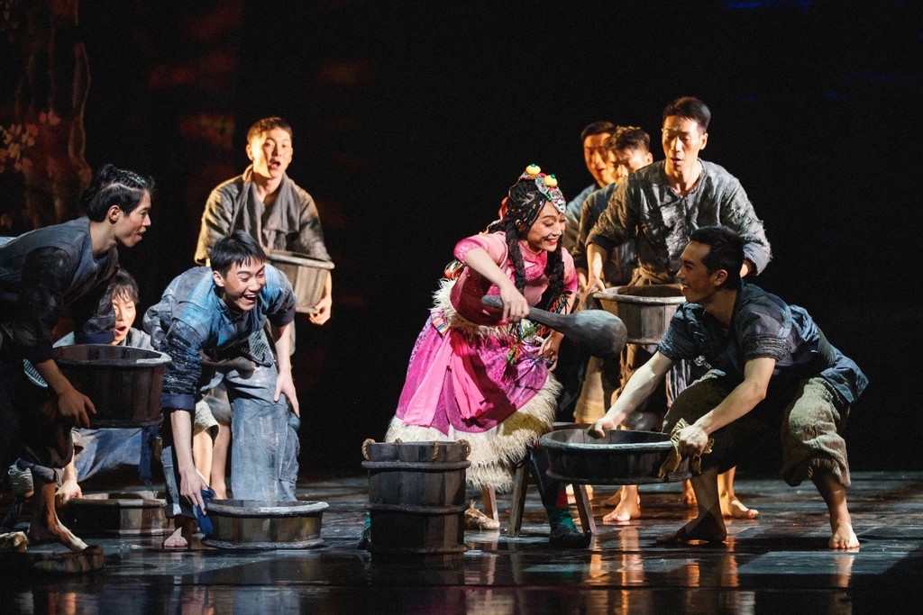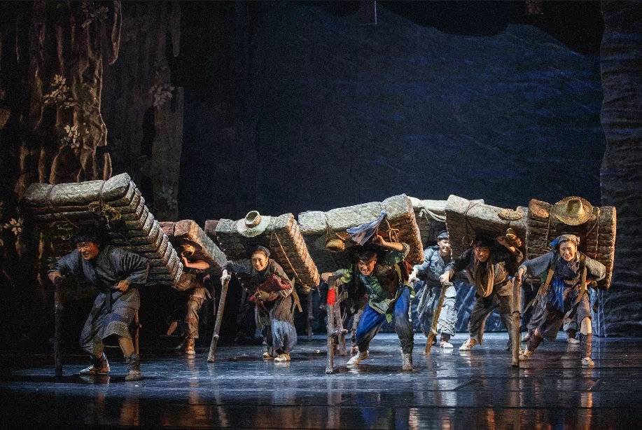 在茶生替代掌拐出行前,剧中用群舞形式展现了一场特别深重的告别。“在当时的条件下,背夫们前往藏区,面对这样极其恶劣的自然,前方就是一条生死未卜的路。”马东风解释,在采风时有老背夫告诉她,一行人走在山路上,本来正跟后面的人聊天,聊着聊着发现没声了,一转头,已不知是什么时候,人就没了。“他们身处苦难却勇敢坚毅,吃苦耐劳,凭着乐观诙谐的精神,一步一步走出了这样一条堪称奇迹的古道。”