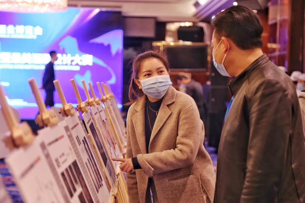 一款瓶身透明,瓶盖呈透明玛瑙色的酒瓶引人注目,其设计将张旭草书作品铸于钟形瓶壁,外观十分大气。还有外观与杨树林(YSL)口红外观相似的酒瓶,其设计理念以女人对口红的喜爱角度出发,将口红与酒相结合,不同颜色的酒放置到瓶中,会呈现不同颜色,宛如不同色号的口红……现场共91款作品分别以效果图形式展现,效果图旁备注了作品设计理念,以便专家评委参考。